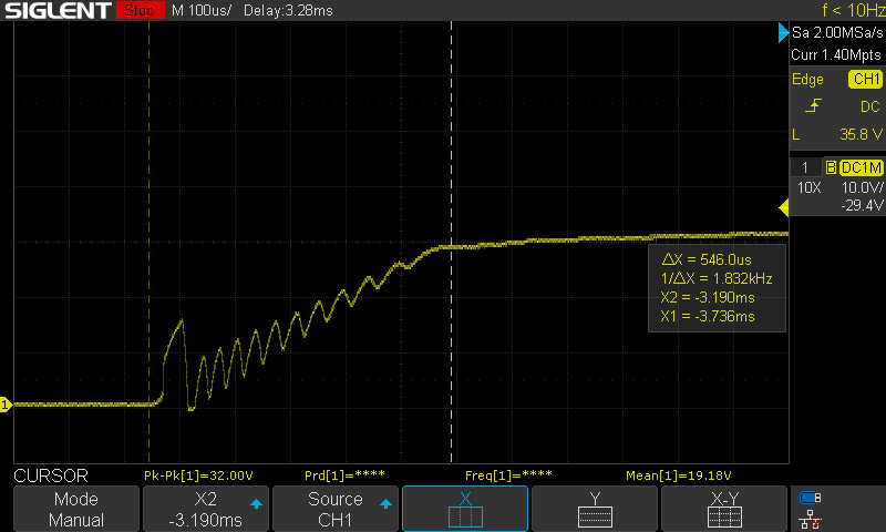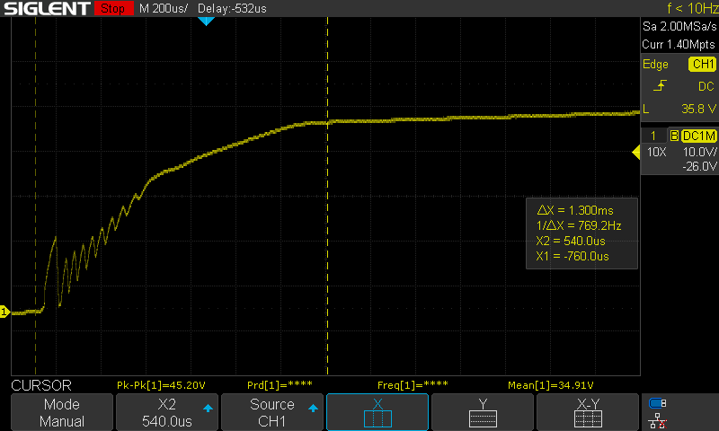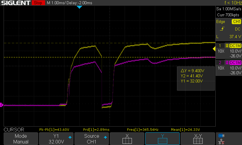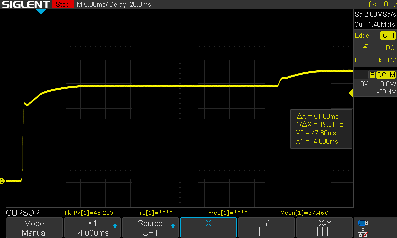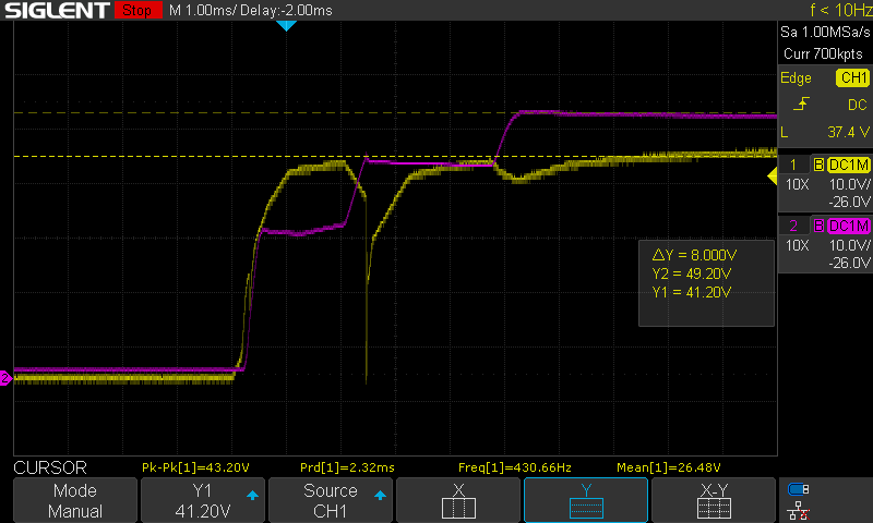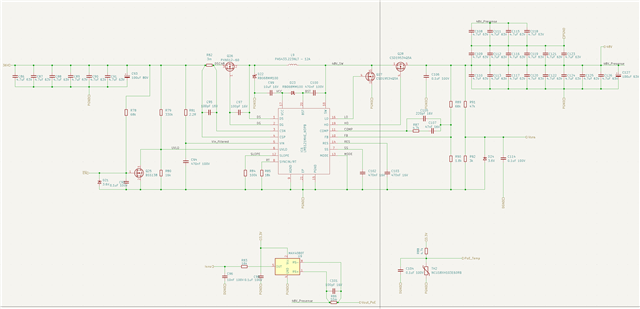 My circuit consists of the standard application schematic LM5121 configured for ~48V output voltage stepping up from a voltage range of 25V-42V.