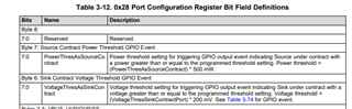 2.) If I select "Port 0 Source Power Greater Than Threshold", will my sink make GPIO High when U and I from register 0x34 - Active Contract PDO result in greater power then are set in 0x28? I set in 0x28 reg Power threshold to 95W and when I get source data drom 0x34 reg. U=20V, I=5V nothing happens.