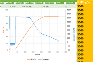 I have noticed that even though I set the Full Charge Capacity to 3250mAh, the fuel gauge seems to use the default (ROM) Full Charge Capacity of 3000mAh.