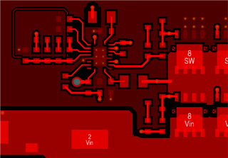 The layout closely follows the TI recommended layout in section 11.2 of the part datasheet.