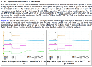 During input short interruptions, the DGATE is OFF for reverse current blocking and the C pin which is connected to common drain point is disconnected from input. The PD remain ON because, the C pin voltage is powered from Vout when Vin drops to 0V during short interruptions.