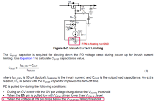 The PD is pulled down when voltage at VS pin drops below the V(VS POR) falling threshold during short interruption right?