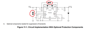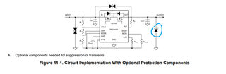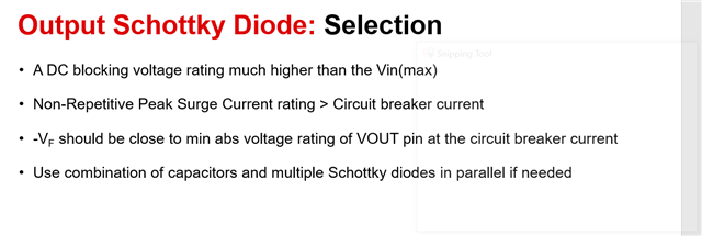 can you tell what is the purpose and how to select schottky diode on output, page 38 figure 11-1 in Datasheet?