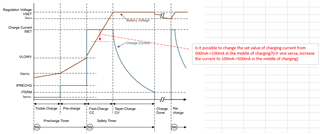 Is it possible to change the set value of charging current from 500mA->100mA in the middle of charging?(Or vice versa, increase the current to 100mA->500mA in the middle of charging) See attached.