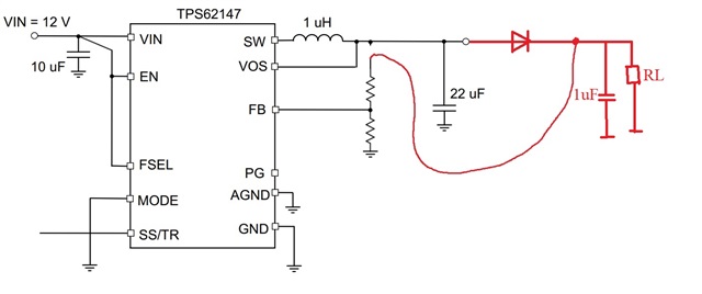 I want to modify the output of the TPS62147RGXR so that it can withstand 100V externally applied like this:
