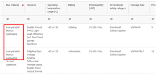 In case of filtering Hotrod feature, the package is VQFN-HR or VQFN-FCRLF or WQFN.