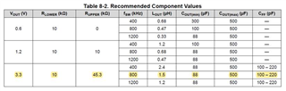 Can I assume that the switching regulator will operate stably if I stay within the values in the table on page 21 in the datasheet?