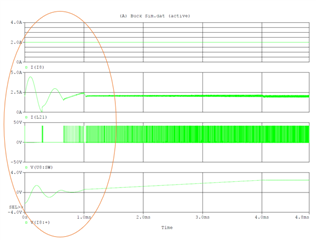5) The output voltage also goes negative and this should not be per the footnote on pg 4 of the datasheet. Do you know why this has happened? How well is the sim correlated to real life?