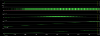 4) The startup from sim is way different from the result in the datasheet. I can see the 4ms soft start and the 18ms overcurrent blanking time prevents a shutdown but the 3.8A I_HS_Limit is not clamping well at startup. Have you encountered this before? Do you think this will occur in real life?