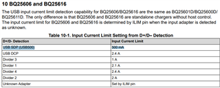 This description was not found for Input Current Limit when “D+/D- Detection” is SDP.
