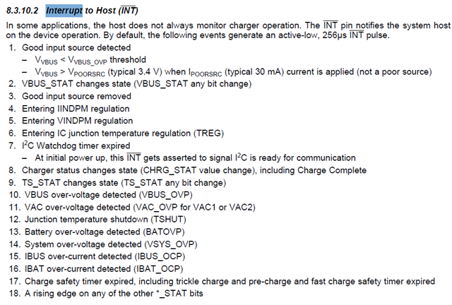 In the given scenario, the BQ25792 triggers interrupts in TPS, which in turn notifies the MCU by setting the INT_EVENT1 register concerning a situation in the BQ registers. To provide a concrete example, I'm particularly interested in monitoring battery overvoltage detection as outlined in section 8.3.10 of the BQ25792 datasheet.