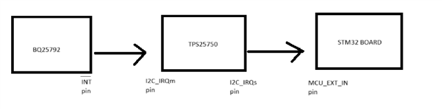 My specific concern is whether there's a viable approach to communicate between BQ, TPS, and the MCU. I understand that the Technical Reference Manual (TRM) illustrates the use of I2C_IRQs pins for communication between TPS and the MCU, but I am seeking a solution for the communication path involving BQ -> TPS -> MCU.