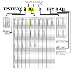Looking for voltage detectors, 12.0 and 12.4 volts. having trouble coming up with correct part numbers in tps3760 or maybe I'm not understanding something about the numbering system. Can I get some help, please.