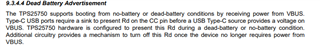 I am a bit confused on the dead battery behavior of the TPS25750.