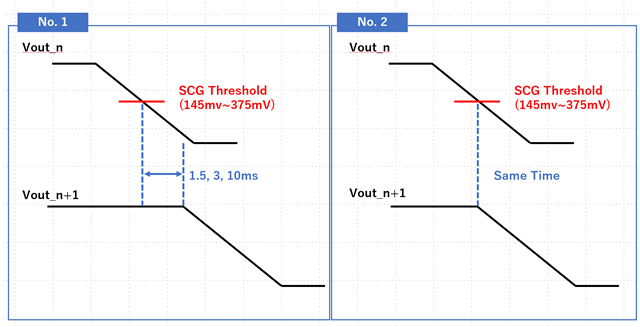 According to my results, the timing of power down changed with the load current. Is it safe to assume that the desired power down sequence can be realized by setting the SCG when there is no load?