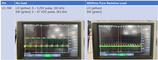 - When connect to a load (48Ohm, should draw 0.6A). Vout is immediately drops to 0V, and no current output. C38 (capacitor at SS) is less hot with load (but no current), about 50 degrees.