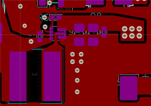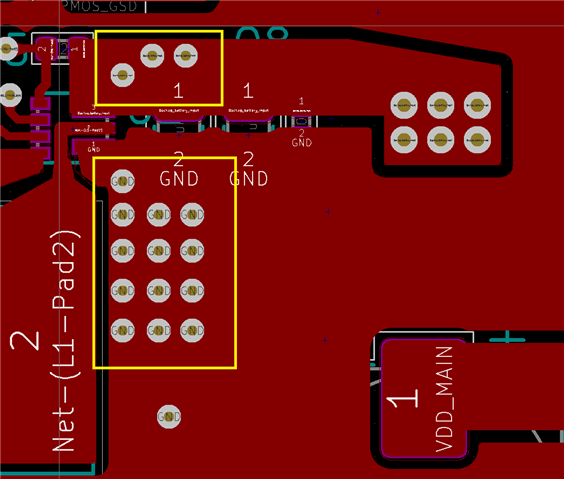 Please check the updated layout. I've tried to add more vias. For ground side, I think it should be good. For Vout side, it difficulty to add vias.