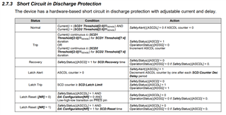 I am using BQ40Z50-R3. I am trying to use short circuit protection for my battery. If short circuit is detected I wanted to try to recover it first but if it fails to recover , set Permanent Fail flag ASCD and shout down or stop trying to recover it.