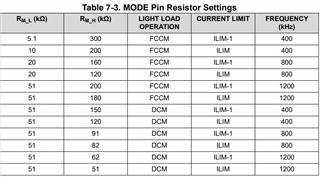 According to datasheet, When I set FCCM, ILIM, 1200kHz mode, the Rm_H is 180k and Rm_L is 51k.