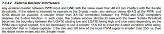 On the datasheet 7.3.4.2 there is note about external resistor between PWM and GND.