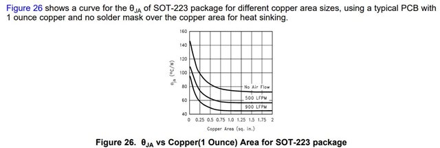 As you see for 0.5 sq. in. area of copper the Theta JA is around 90 C/W.