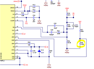 adaption: V_out = (R19 + R24) / R24 * V_REFC * N_(SEC->AUX) = 236.5/36.5 * 1.75 * 2.14 = 24.48V