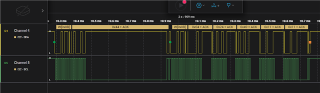 For instance, as it can be seen it below, I`m setting a two bytes register using the CMD 0x00, and just after reading its value using the command 0x44. The reading values are correct.