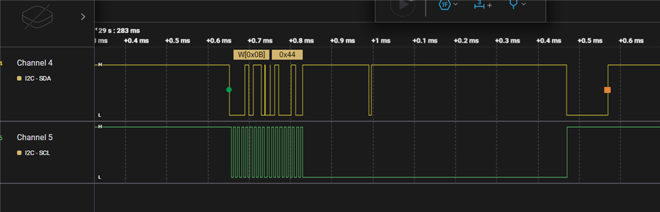 The problem is that when I try to write some value at the same register (0x438C Cell 3 Min Voltage) , it doesn`t work. As you can see, there is no ACK when I try to send the 0x44 command: