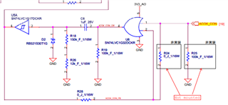TPS3808G33DBVT(U33) を使用した回路の出力 (output of circuit using) (ACOK_CON信号)は、予想外の0.7V〜0.8Vを出力します。この0.7V~0.8V出力は、後続の高パルス発生回路の誤動作の原因となります。