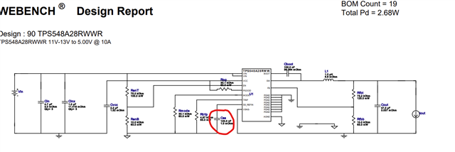 We plan to use the TPS548A28RWWR regulator in our new design and did a simulation for the same using TI webench.