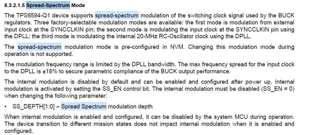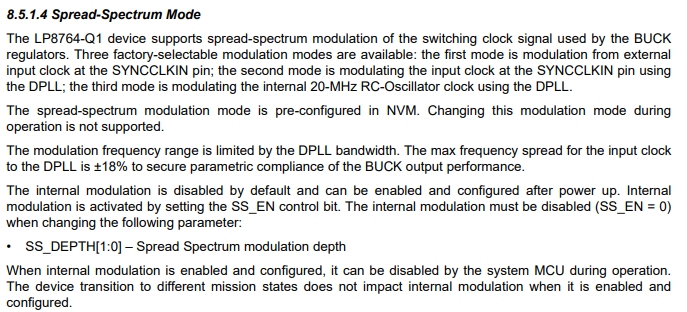I'm curious about how to enable the Spread Spectrum function for TPS6594-Q1 and LP8764-Q1.