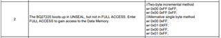 I saw this post https://e2e.ti.com/support/power-management-group/power-management/f/power-management-forum/585243/bq27220-can-not-update-data-memory-parameter saying that the steps mentioned in the tech. ref manual are incorrect. Can you please guide me how can I resolve this error & proceed further.