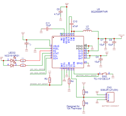 The QON pin (which is pulled up by the BQ25896) is attached to a switch with a ground the other side. There are no resistors.
