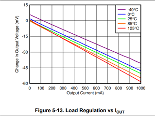 and Figure 5-13. Load Regulation vs IOUT, shows that the output change @750mA about 40mV, when output is 1V, the best expected accuracy would be 40/1000=4%.