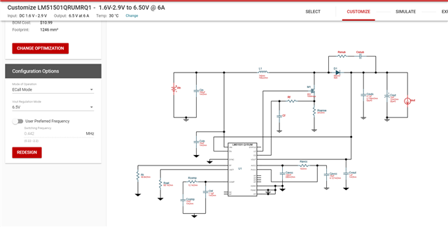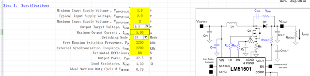 Now, I use LM51501-Q1 to boost the super-cap, the input voltage is 1.5V~2.9V, the output is 6.5V@5A according to the value excel form of LM50501 Quick start. I find the output voltage could not be stable to 6.5V@5A, the output voltage will drop to about 4.7V.