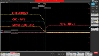 I mean, before HDRV1 reached its lowest level, LDRV1 had already risen, and the intersection point was between 1.7V and 2.4V. At this point, the high side and low side MOSFETs are turned on at the same time, which is easy to cause MOS burning.
