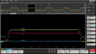 The first plot shows a very slow slope for the gate signal of the high side Buck MOSFET.
