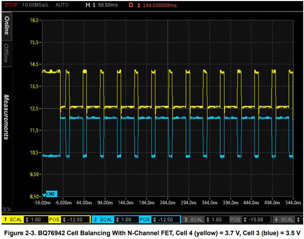 I am using the BQ76952 in a 4 cell stack up with the cells at 1, 2, 3 and 16. I have external balancing circuits with about 350mA. Cells 1, 2 and 3 are balancing just fine but cell 16 seems not to balance even though BQ Studio displays that it is balancing.