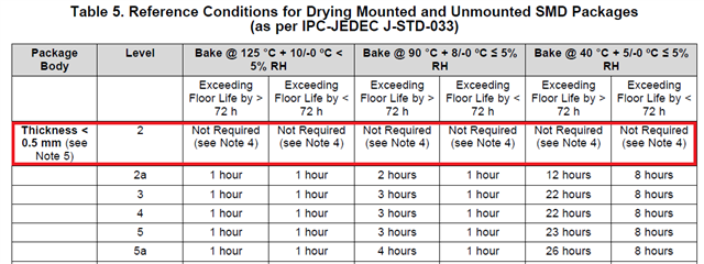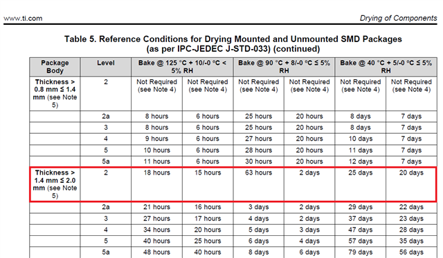 We are researching Bake conditon for TPSM82903SISR and refering to "AN-2029 Handling and Process Recommendations"