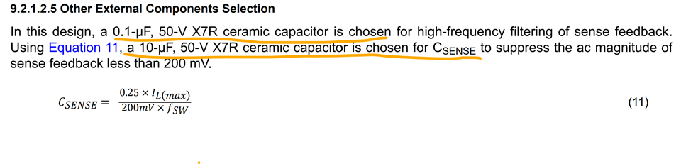 3. Equation (10) in section 9.2.1.2.3 "Output Capacitor Selection" does not contain the value of the chosen capacitor while it probably should. Likely it is a mistake. Please clarify.
