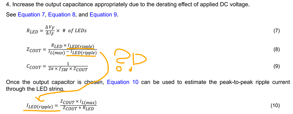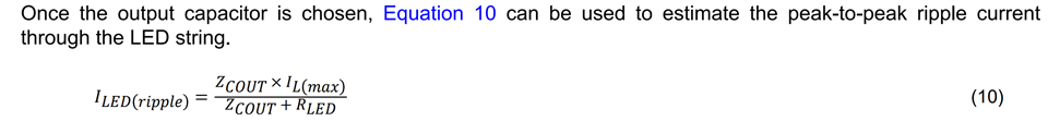 2. In the equation (8) ILED(ripple) is used but then in equation (10) it is calculated. Likely it is a mistake. Maybe in equation (8) ILED(max) should be used instead?