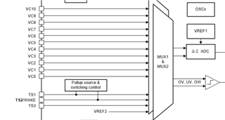 2. When ADC is sampling TS/GPIO, whether the OV/UV comparator is still working? It seems that there is no MUX for the cell voltage monitoring?