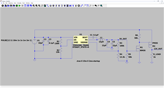 I am trying to control some FETs based on TPS54308's adjustable UVLO feature. I want the the output of the converter to turn on a switch which allows the battery voltage to reach the device. The circuit is shown below: