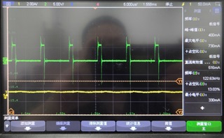After short circuit is cleared, yellow is normal load current but Vgs could not recover from LM3481. Normal working frequency is 130kHz, OCP frequency is 12KHz。