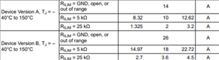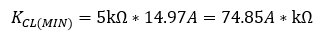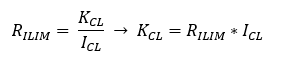 As seen above the RILIM range for both device versions is (5kΩ-25kΩ) using that with the equation the max and min KCL can be calculated.