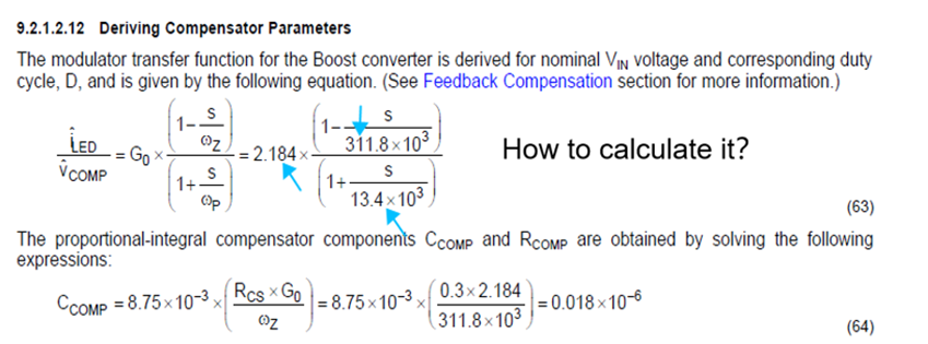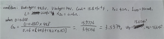 2, In the applied example in page 37, the value calculated by me and the customer is not 2.184, 311.8kHz, 13.4kHz for G0,wp and wz based on known condition so far. Could you pls suggest the detail on the calculation process for those indicator? Includes the value of L, RIS, Cout, RD, Vin, Iled, Vo respectively.