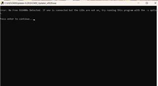 I am having an issue with getting bqStudio to recognize the EV2400 on my laptop. I am using bqStudio version 1.3.101 on a windows 11 laptop. The device shows up in device manager under the HID devices, but I can't access it in bqStudio. I've ran the same bqStudio version and same EV2400 on a different laptop and it works just fine. I only have a problem on this computer. I've tried to run the FW updater for the EV2400 but I get an error such as below: