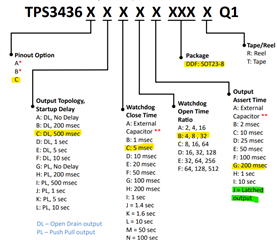 I think I want to use the one with pinout "C", but from the orderable part number information it seems that TPS3436CCCBGDDFRQ1 is not actually latching since it doesn't use option "J" latched output.