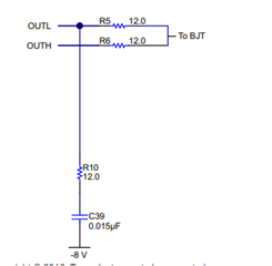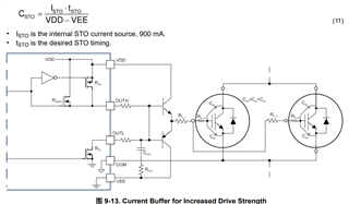 The recommended soft turn-off circuit in UCC21756 datasheet, in my design VDD-VEE=25V (+20/-5V) and I want a 600ns STO process, so Csto is about 22nF according to the formula in datasheet, and Rsto is 10 ohm.