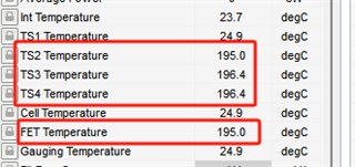 Can you advise why TS2/TS3/TS4/FET temperature is so high? while TS1/CELL/GAUGE temperature is normal.